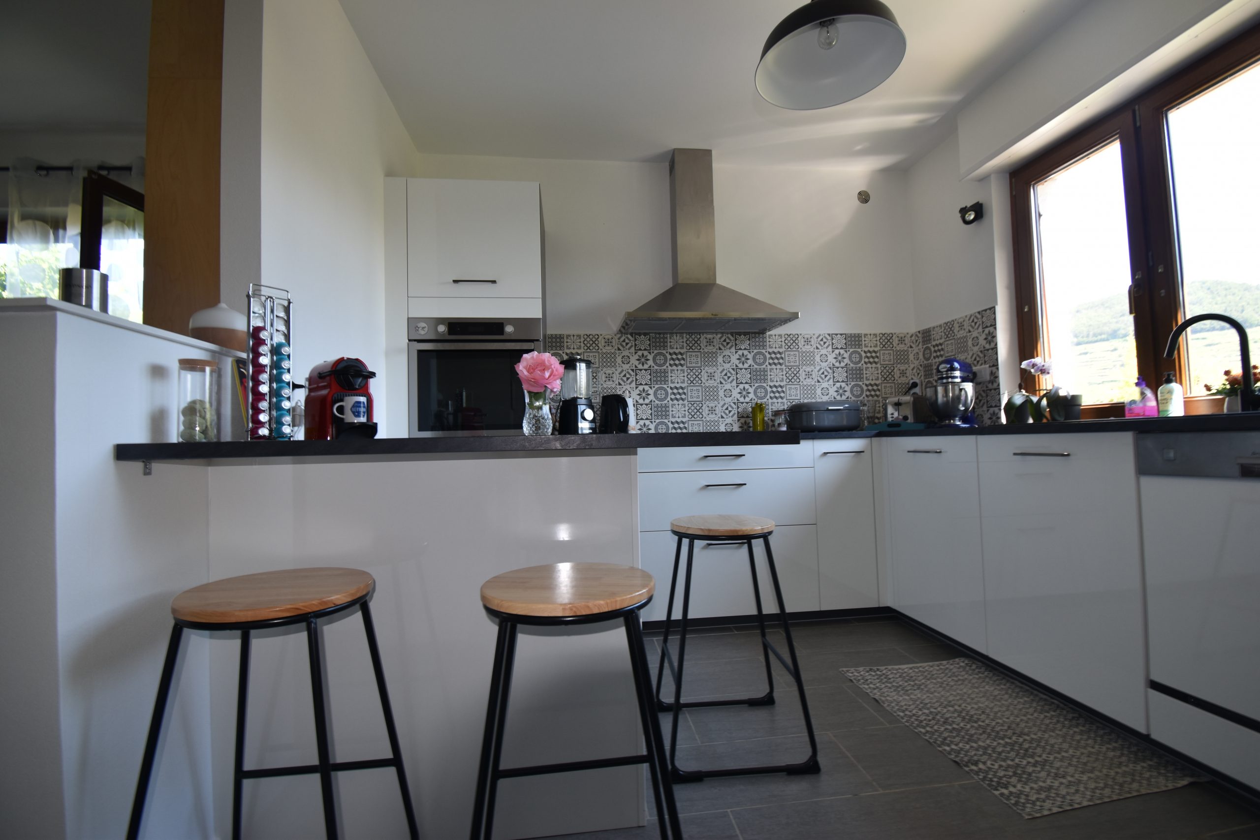 – 1 cuisine neuve totalement équipée qui donne sur le salon séjour spacieux et lumineux donnant accès à la terrasse et au jardin
