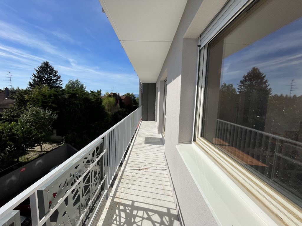 Riedisheim : F3 traversant de 75M2 situé au calme avec belle vue dégagée dans une résidence relookée, rénovée et isolée